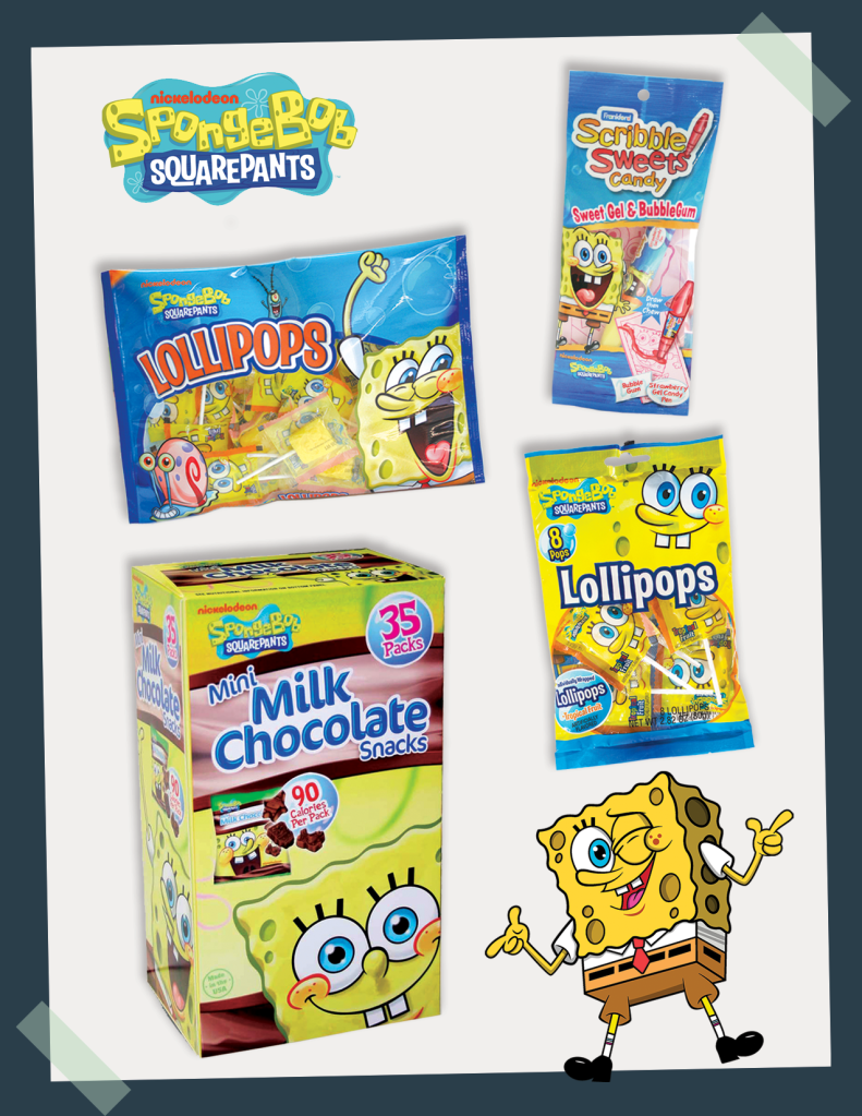 Designed vibrant SpongeBob SquarePants packaging for lollipop bags, milk chocolate mini snack bags, and scribble sweets, capturing the show’s playful underwater energy. Lollipop bags feature bold character illustrations and color pops to highlight flavors, with clear windows for product visibility and easy hanging displays. Milk chocolate minis and scribble sweets use glossy finishes, fun graphics, and portioned sizing for impulse buys, ensuring strong shelf appeal while meeting licensed brand guidelines and kid-safe standards.